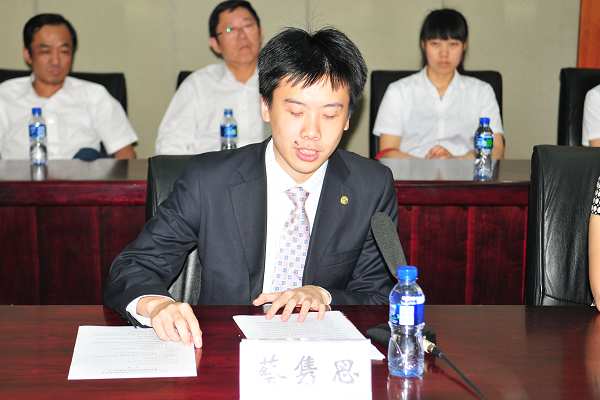 蔡隽思讲话中对获奖同学表示祝贺,他表示,此次代表父亲和新华集团来到东北大学,就是要延续与学校的深厚的情谊。希望获奖同学珍惜每一刻光阴,不辜负家长、学校、国家的期望,早日成为祖国建设的栋梁之材。