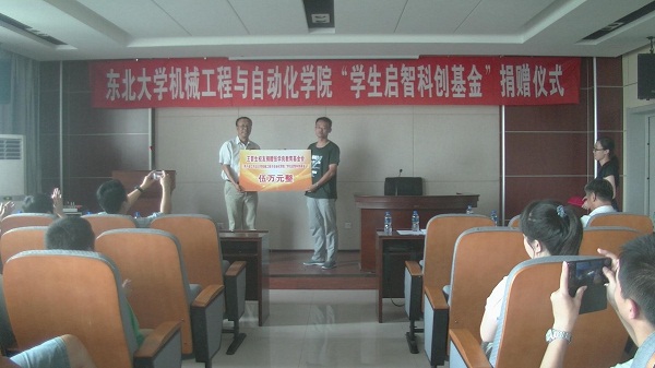 捐赠仪式首先由高英学书记为王晋生校友颁发捐赠证书,随后田畅副书记宣读了《东北大学机械工程与自动化学院“学生启智科创基金”管理办法(试行)》。王晋生校友在发言中指出,今年是其本科毕业十周年,曾经在校期间是恩师们帮助了其成长,成功之后更愿意尽自己所能去帮助母校繁荣学术文化,回馈母校,鼓励更多有创新创业思想的同学们开展创新实践,完成知识转化,为母校更好地争光添彩。高英学书记在讲话中表示感动于王晋生博士的良苦用心,为机械学科的发展和学生的成长成才的用心,也更感动于其仅仅毕业五年对母校的热爱,这种反哺母校的精神值得每个人学习。最后李鹤主任指出,每个学生都会是东大人文精神的传承,共同维护着东大人的理想与信念,当有能力汇报母校汇报社会时,要懂得感恩母校的培养,鼓励同学们要抓住当下,有好的想法与创意要努力去实践,争取变为现实,在科技日新月异的今天,去实现自己的理想。