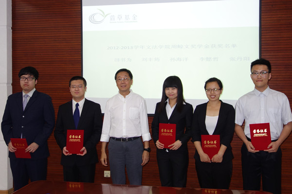 相关链接:颁奖仪式前,周��先生与受资助的即将毕业的萱草学子见面座谈。更多萱草基金相关信息请见:http://greengrass.sinaapp.com/