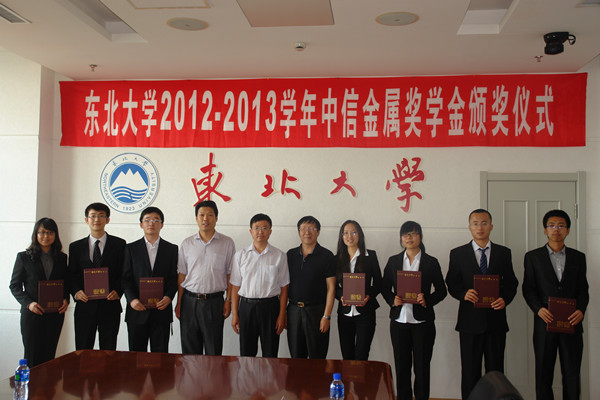 6月24日,东北大学2012-2013学年中信金属奖学金颁奖仪式在主楼1304室举行。中信锦州金属股份有限公司副总经理崔传海,我校副校长姜茂发出席颁奖仪式。