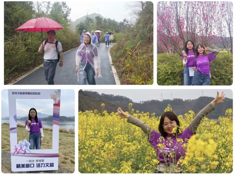 东北大学校友们在一片欢乐祥和的气氛中开启了欢乐行活动。阳春三月,沿途的油菜花、樱花、桃花朵朵盛开,校友们不时驻足打卡,留下青春靓丽的瞬间;来自嘉兴的丁善超、陈丽聪校友夫妻和校友二代也乐在其中,两个小朋友表现出对大自然的好奇以及对本次活动的兴奋,走在校友队伍的前列。羽毛球队队长黄靖夫妻、校友刘宏阳情侣牵手漫步,甜蜜的喜悦溢于言表。