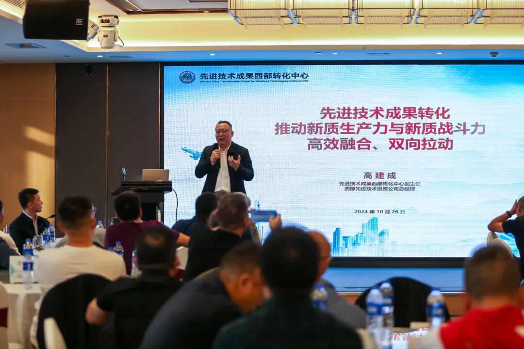 中国国防科工局先进技术成果西部转化中心副主任高建成校友,做校友企业家论坛主旨演讲:《先进技术成果转化,推动新质生产力与新质战斗力,高效融合双向拉动》。