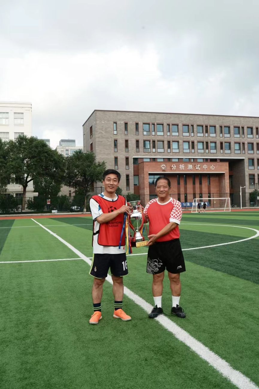 刘建军书记与钱晓龙教授为两支球队颁发纪念奖杯。无论场上战况如何,大家同属东大校友,两支来自东北大学的球队共襄盛举,用汗水与激情谱写着东大荣誉!