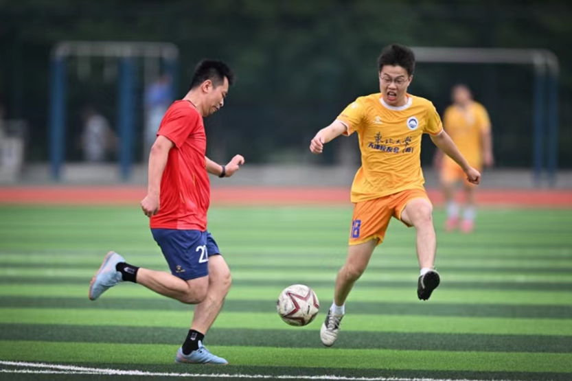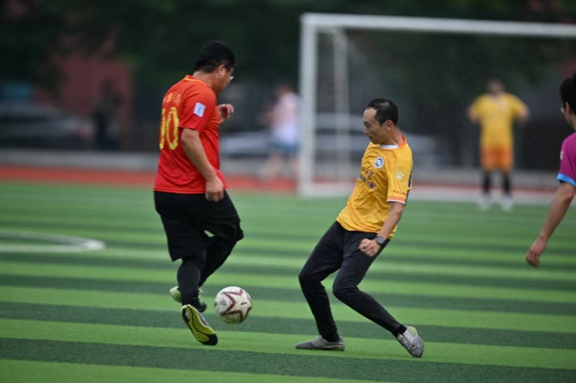 本次比赛采用三节制。每一节比赛,队员们都全神贯注,全力以赴。比赛中,队员们传球、围堵、抢断、射门,斗志昂扬,各显神通......最终,比赛以教职工足球队3:2天津校友会(新)足球队的比分圆满落幕,每一位队员都将汗水挥洒在母校的土地上,用运动与热血彰显着东大精神。