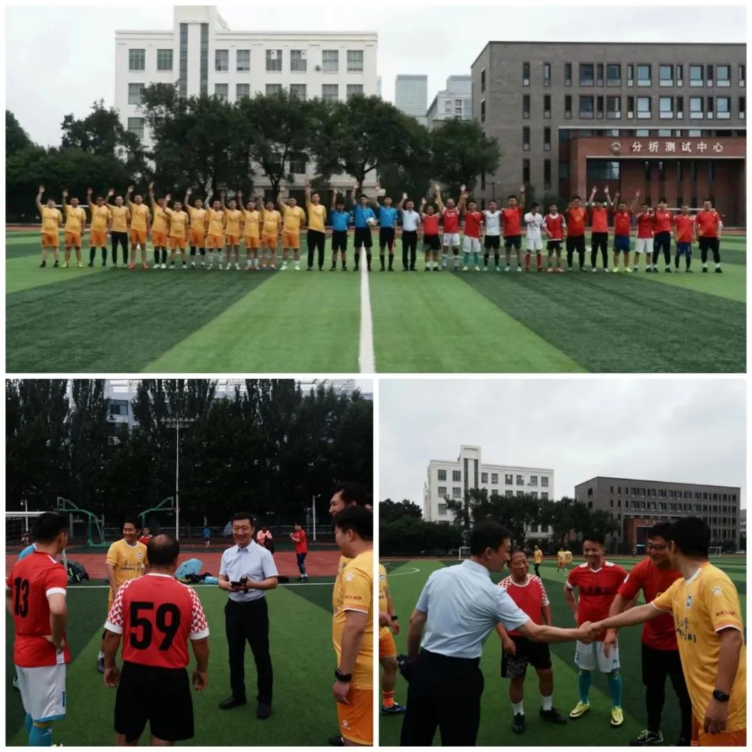 东北大学对外联络与合作处处长、校友总会秘书长马天威代表学校欢迎校友们回校参赛,并预祝天津校友会(新)取得佳绩。天津校友足球队与教职工足球队的队员们齐聚一堂,两支来自不同地域,同属东北大学的球队,在母校五五体育场足球场地,共同拉开了本次足球友谊赛的序幕。