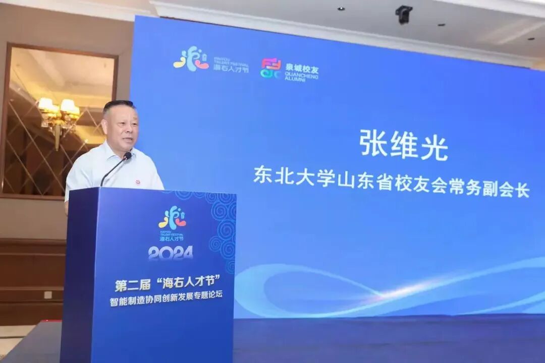 东北大学山东省校友会常务副会长张维光在致辞中强调了东北大学在工业智能制造领域的领先地位,并表示希望以此次论坛为契机,促进校友项目与济南产业的深度融合发展。