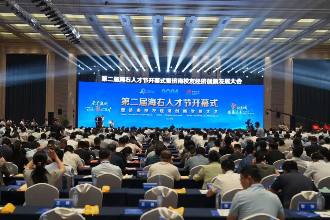 在开幕大会上,济南市委副书记、市长于海田和山东省人力资源和社会保障厅党组成员、副厅长衣军强先后致辞,并发布了《济南市人才发展蓝皮书(2024)》和《济南校友经济20条》。同时,为济南校友经济发展促进会、泉城校友之家、泉城校友会客厅及中国研究生创新实践成果孵化基地(济南)揭牌,为第二批“海右伯乐”代表和济南“校友双招双引大使”代表颁发了聘书,举办了校友经济项目签约仪式,并发出“聚创泉城 共赢未来”的全球倡议。至此,第二届“海右人才节”正式启动。