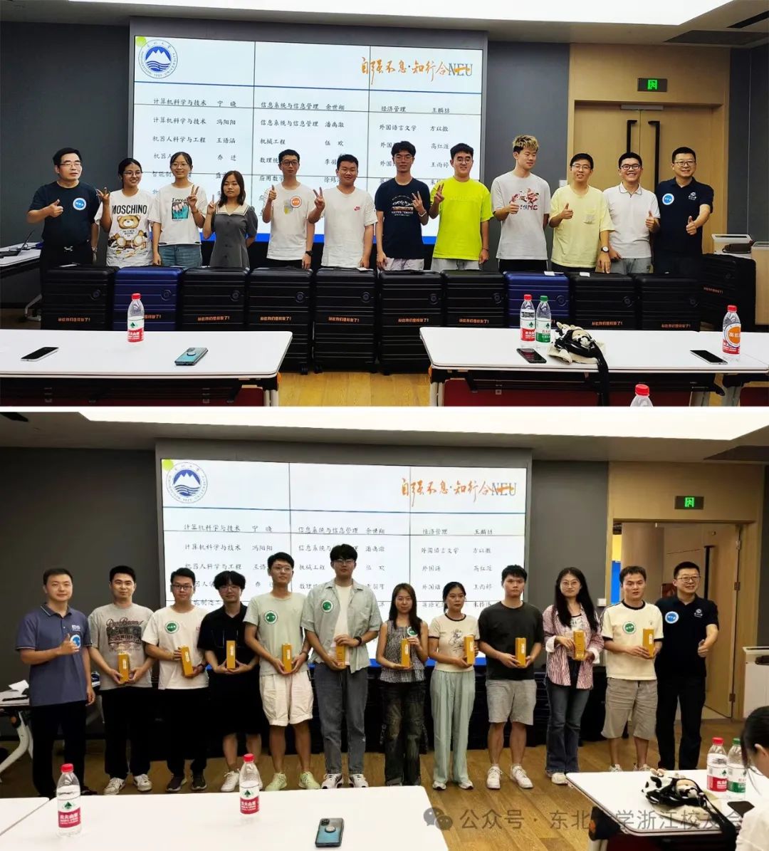 活动最后,执行会长陈旭夏、秘书长刘子勇、副会长杨明、徐华勒代表浙江校友会分别向新生赠送新秀集团赞助的东北大学纪念行李箱,向毕业生赠送蚂蚁兄弟赞助的东北大学浙江校友会纪念桐乡胎菊。这份礼物不仅承载着校友会对新生们的热烈欢迎与美好祝愿,更寄托着对毕业生们未来前程的深切期望与美好憧憬。