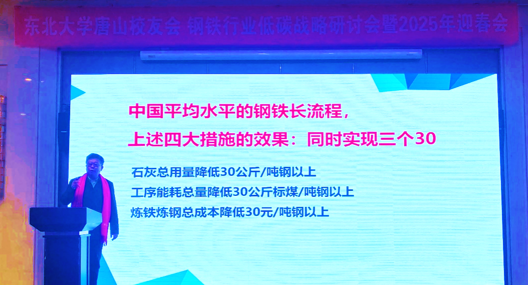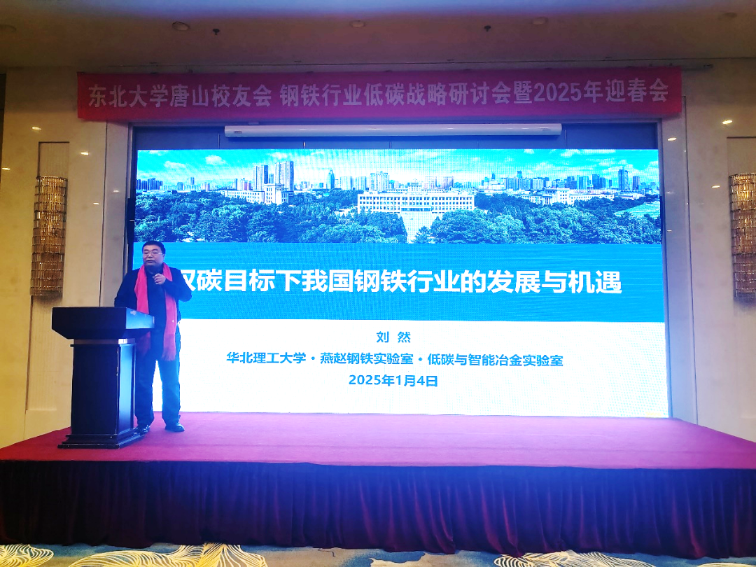 1月4日,东北大学唐山校友会在河北唐山成功举办了“新百年,新辉煌钢铁行业低碳战略研讨会暨2025年迎春会”。来自天津、秦皇岛、丹东、唐山等地校友欢聚一堂,共谋钢铁行业低碳技术发展,互致新春祝福。东北大学校友总会秘书长、对外联络与合作处处长马天威,天津校友会(新)会长于铁生、秦皇岛校友会会长梁云升、丹东校友会副会长朱晓峰等应邀出席会议。