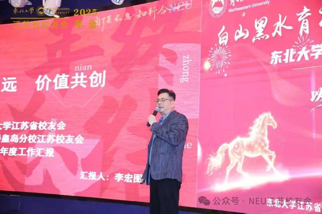 东北大学江苏省校友会秘书长李宏图,作《东北大学江苏省校友会&东北大学江苏省秦皇岛分校校友会2025年度工作汇报》。《汇报》围绕四条主线做了总结:暖心筑基·赋能同行——以多维度服务护航校友成长、反哺母校·校地协同——以深度联动激活共生价值、区域链接·资源共享——以走访交流夯实发展根基、蓄力远航·智启新程——以创新机制共建长效共同体。新的一年,江苏省校友会将继续围绕“聚心致远 价值共创”的理念丰富校友生活、助力校友成长,赋能校友经济、助力母校发展。