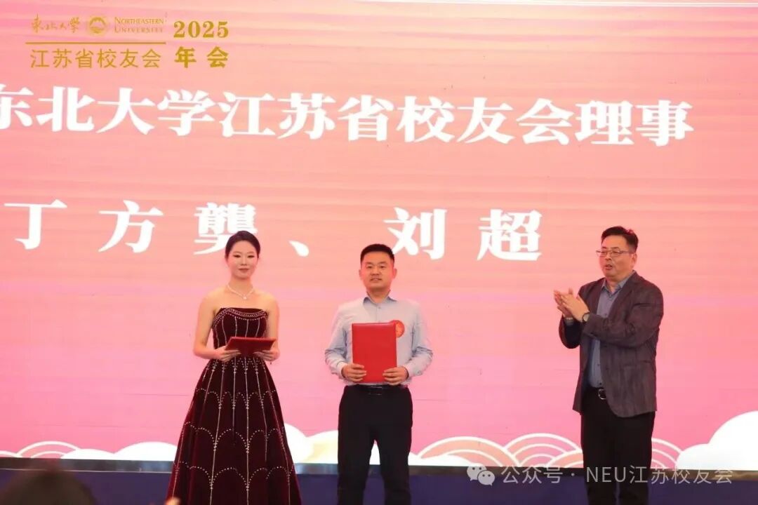 东北大学江苏省校友会副会长兼秘书长李宏图为新增补理事颁发聘书(丁方龑、刘超)